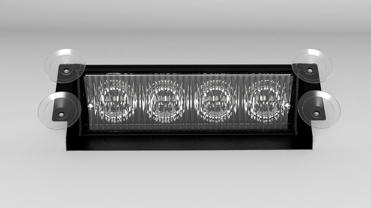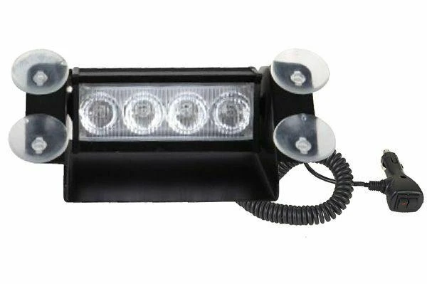 The flashback shield is adjustable or removable making the ‘4’ a very functional light with multiple placement positions and even higher visibility! 4 Generation IV Class 1 LEDs produce 12 watts of piercing bright light make it perfect for police vehicles. The TIR lens is made of dependable polycarbonate material which is as clear as glass, won’t yellow, and stays bright in almost all weather conditions. The high-grade aluminum housing is durable and impact resistant. The Enforcer 4 has 26 flash patterns providing a wide, wide range of strobing choices for every situation; it has pattern memory, too, so it will pick up right where you left off when you turn it back on! It has 4 solid and 7 split-color combinations to choose from. The ON/OFF switch and Flash Pattern switches are located on the cigarette lighter power plug in; it has a 9’ expandable cord for easy placement. The Enforcer 4 can be put high or low on the windshield or back window; it can even be stuck to side windows if that’s what you need!